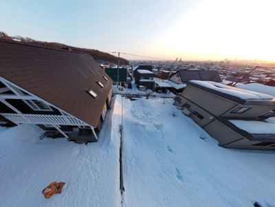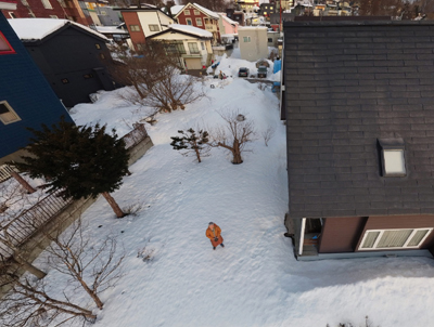 日の出時刻に硬雪になった庭に出て空撮を行う。道新に菊水の円形歩道橋の記事が載る。2009年北海道新聞社から出版した『風景印でめぐる札幌の秘境』にも取材記事がある。妻の運転で札幌市内の風景印のある全郵便局を取材した頃を思い出す。