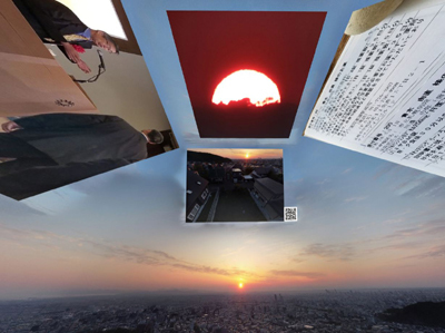 自宅庭のような定点で撮影した写真は空撮写真は季節や天候の変化は記録されていても同じような景観写真が並び、撮影者の意図に関係なく視界全体が写った写真になる。そこで天空部分に貼り付ける写真に撮影者の意図を込めて撮影した写真を選んでいる。画廊に飾る写真のように、空撮写真が画廊の役目をし、天空部分に貼り付けた写真を鑑賞してもらう仕組みともいえる。